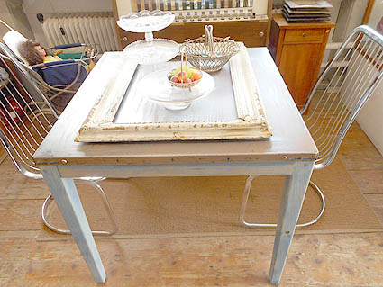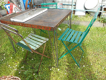 Shabbytisch mit einer Recycling Metallplatte |