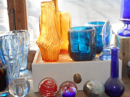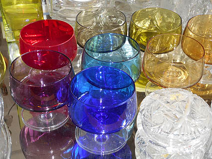 buntes Glas in großer Auswahl, z.B.Vasen, Kugeln und Gläser |