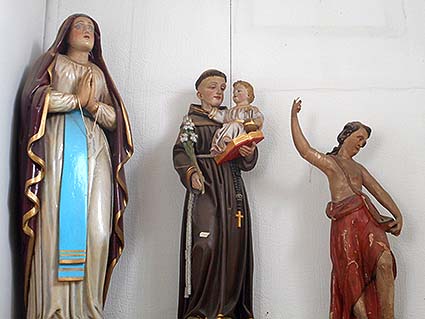 Heiligenfiguren in Holz geschnitzt – Maria, Hl. Antonius und „Unbekannt“ |