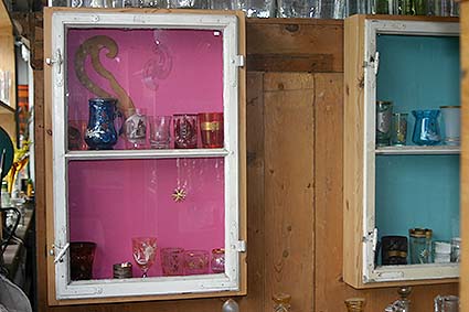 Wandvitrinen aus unserem Hause, gefertigt aus alten Fenstern und mit einem passenden Rahmen versehen, teilweise bemalt, auch in natur vorrätig |